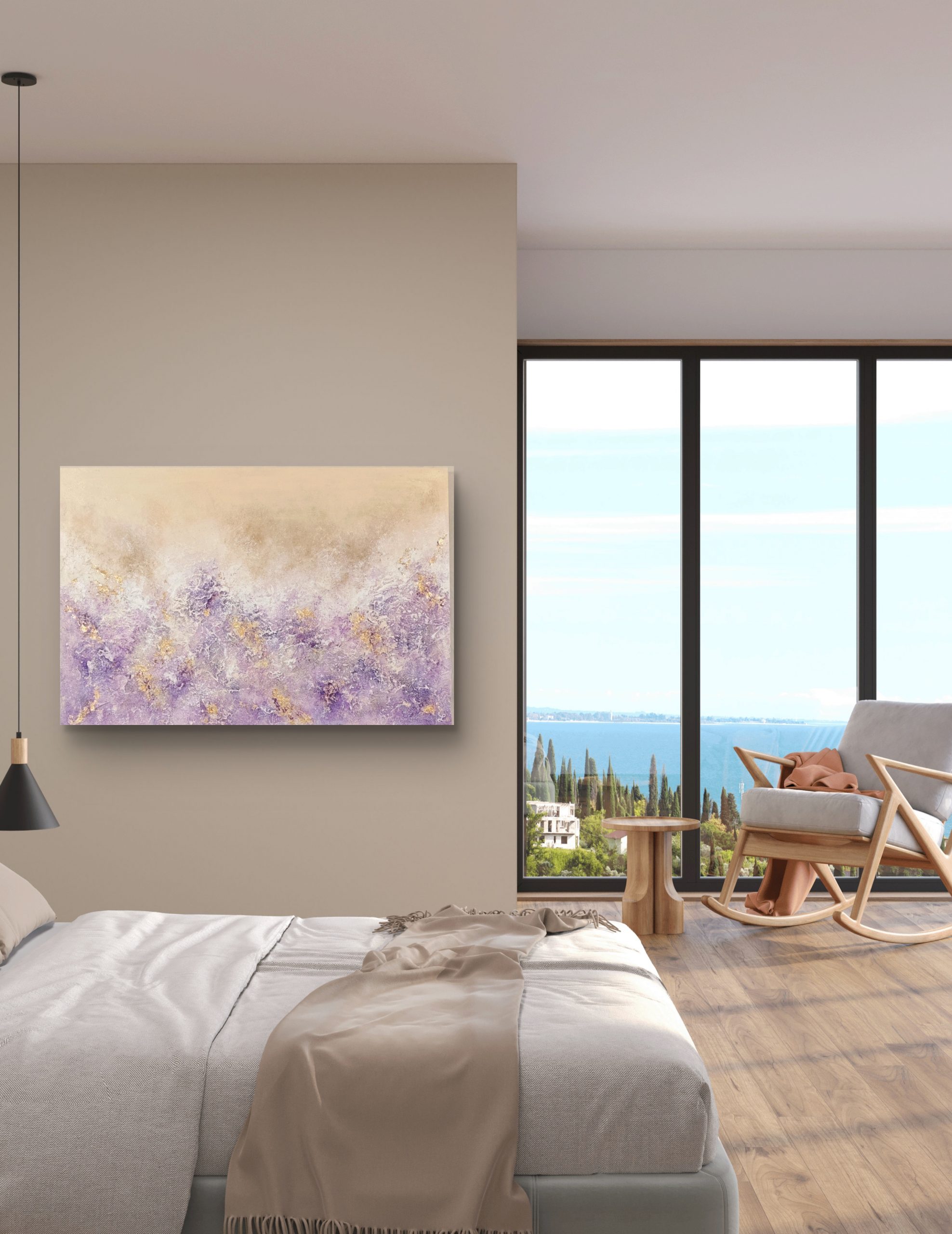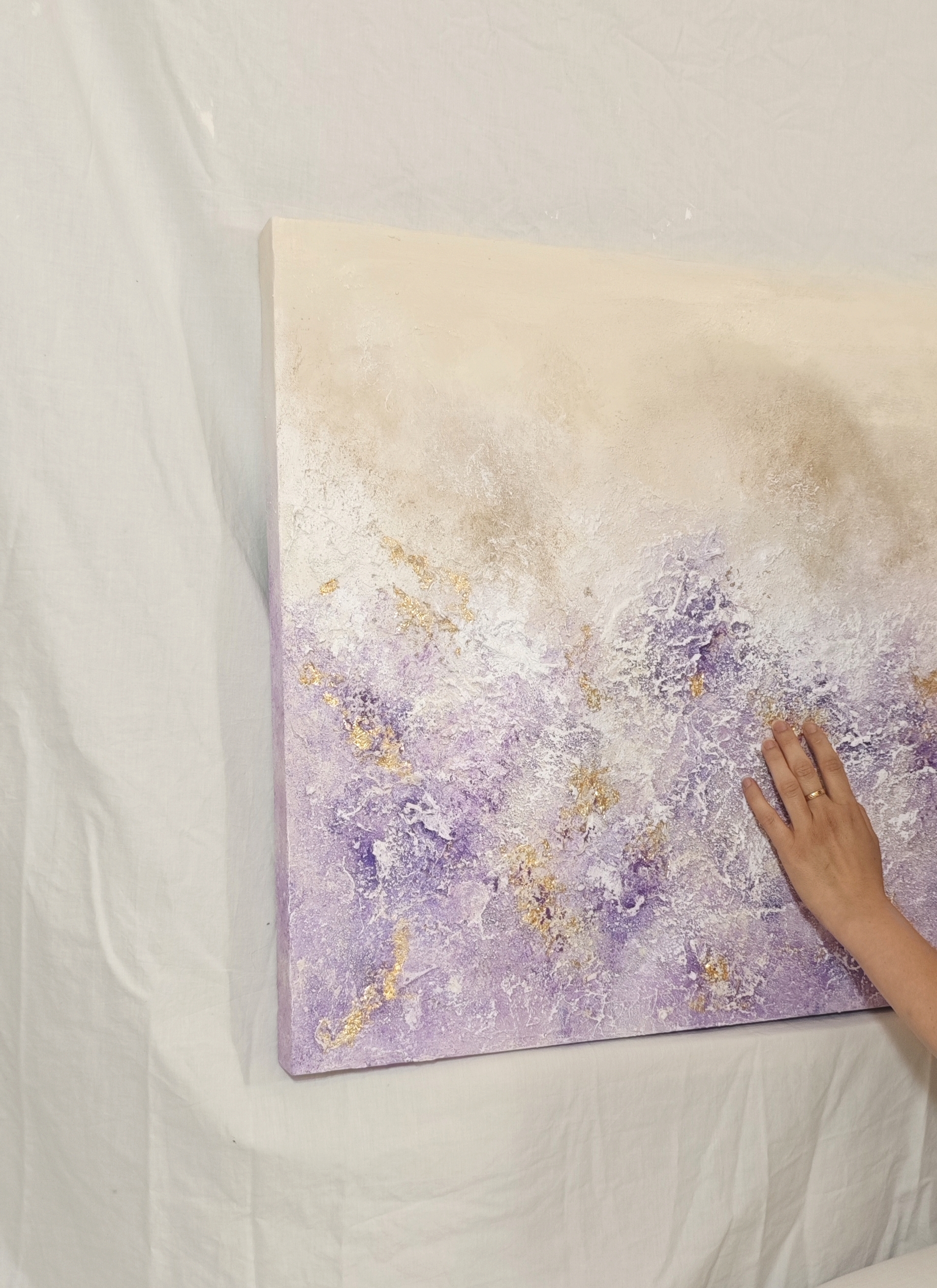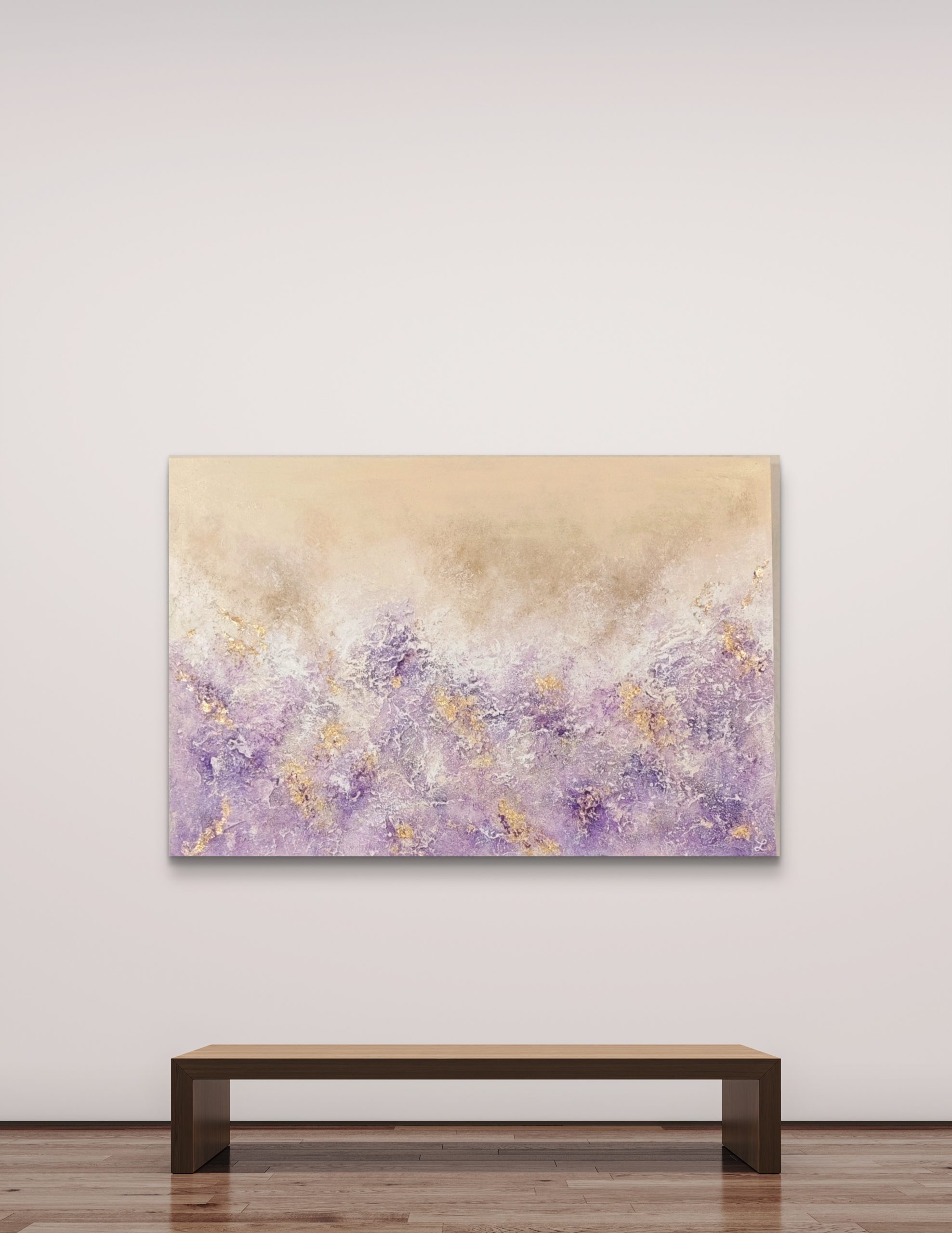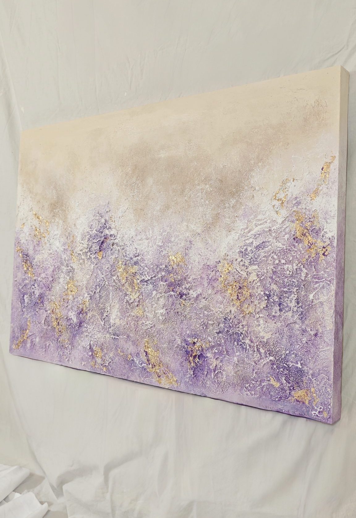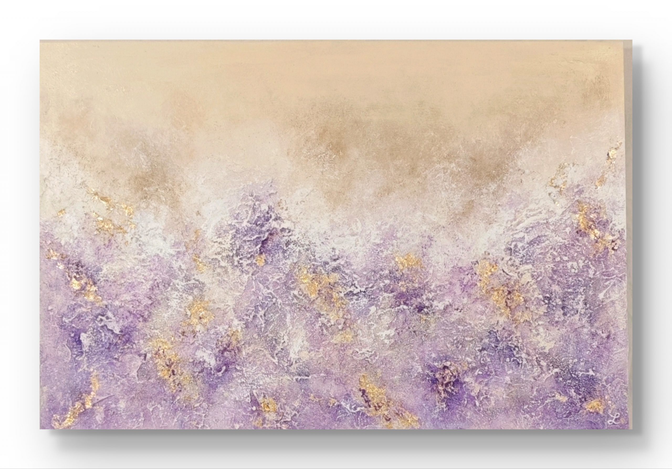 Lavanda es una obra abstracta texturizada que mide 90x60cm.